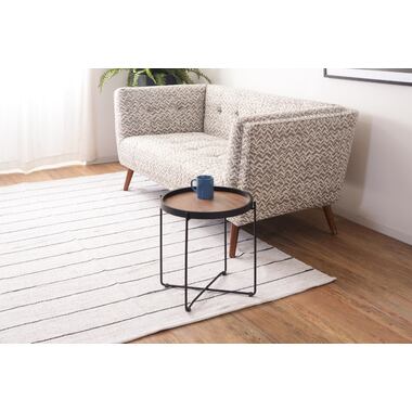 お客様組立 ラウンドトレーテーブル トレーテーブル 木目調 トレー サイドテーブル ナイトテーブル 折りたたみ可 天板取り外し可 ソファサイド ベッドサイド 丸型 Sサイズ おしゃれ 高級感 ブラック