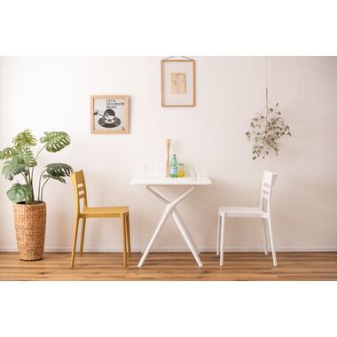 脚がクロスしているように見える、ユニークで特徴的なデザイン。ダイニングテーブルとしてはもちろん、リビングに置いてワークスペース兼カフェスペースを作ってみたり、一人暮らしやカップルのダイニング兼ワークテーブルとして使ってみたり、様々な用途で使えるテーブル。