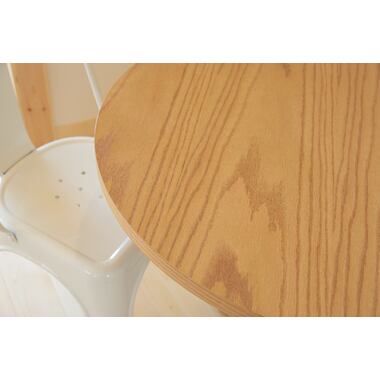 シンプルなデザインのカフェテーブル 間取りに合わせて選べる形3タイプに、テイストに合わせて選べる2カラーを用意。十字脚を使用し、スッキリとした印象に。椅子への座りやすさもポイントです。