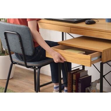 黒いスチールと木目の組み合わせのデスクワゴン 北欧 インダストリアル デスク ワークデスク 勉強机 黒 ブラック リビング 書斎