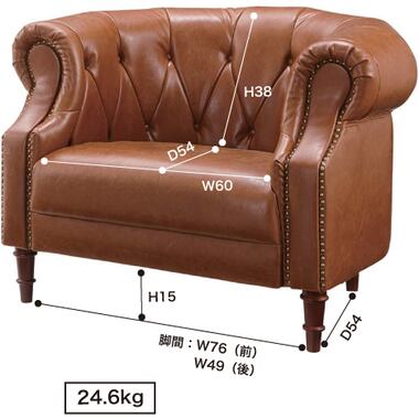 アンティーク調で快適な座り心地の1人掛ソファ 北欧 インダストリアル ソファ リビング