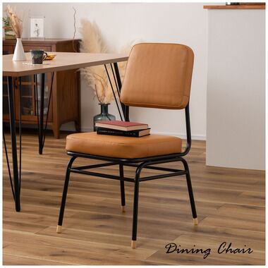 本革と黒アイアン脚のインダストリアルなダイニングチェア