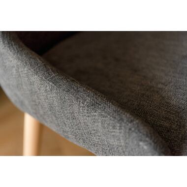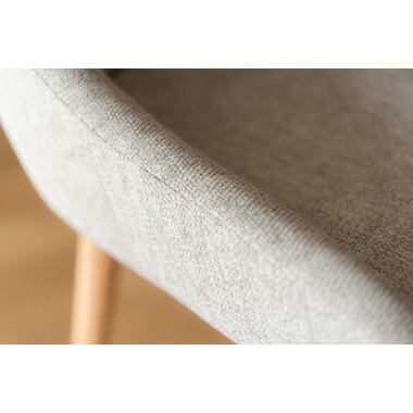 背もたれに柔らかいカーブを掛け、背中にピッタリフィットする設計のチェア。しっとりとした感触の、手触りの良いファブリックを採用。後脚は八の字に広がる形状でデザイン性をプラス。
