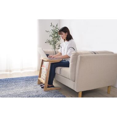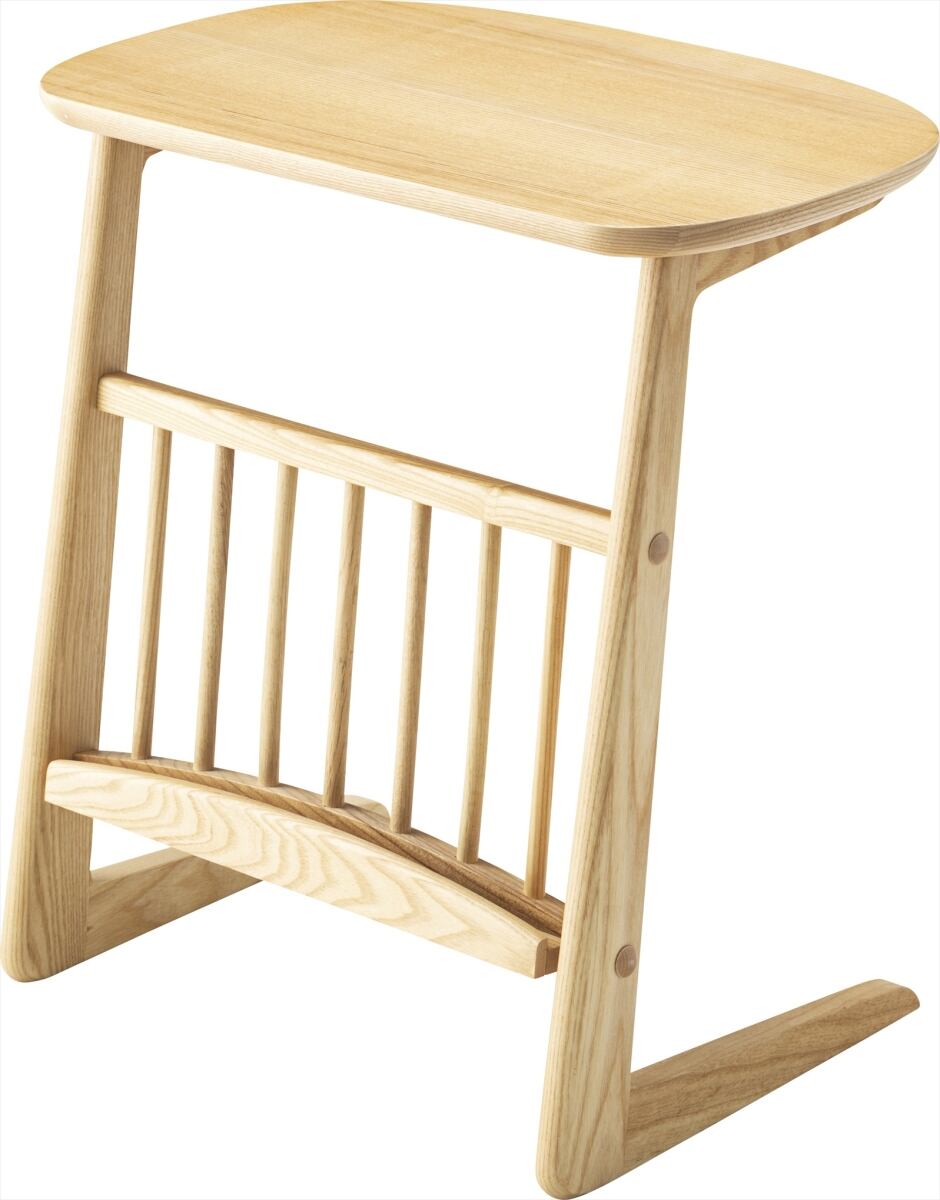 コの字型でソファと一緒に合わせて使いやすい、マガジンラック付きの北欧調サイドテーブルです。