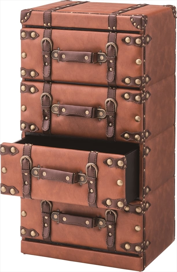 ヴィンテージなトランク風チェスト 4段 北欧 ナチュラル 収納家具 リビング