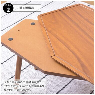 アカシアのこたつテーブル 家具調こたつ ヘキサゴン 80×50cm