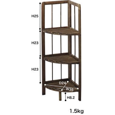 パインのフォールディングシェルフ 3段 コーナー 北欧 ナチュラル 収納家具 棚 ラック リビング