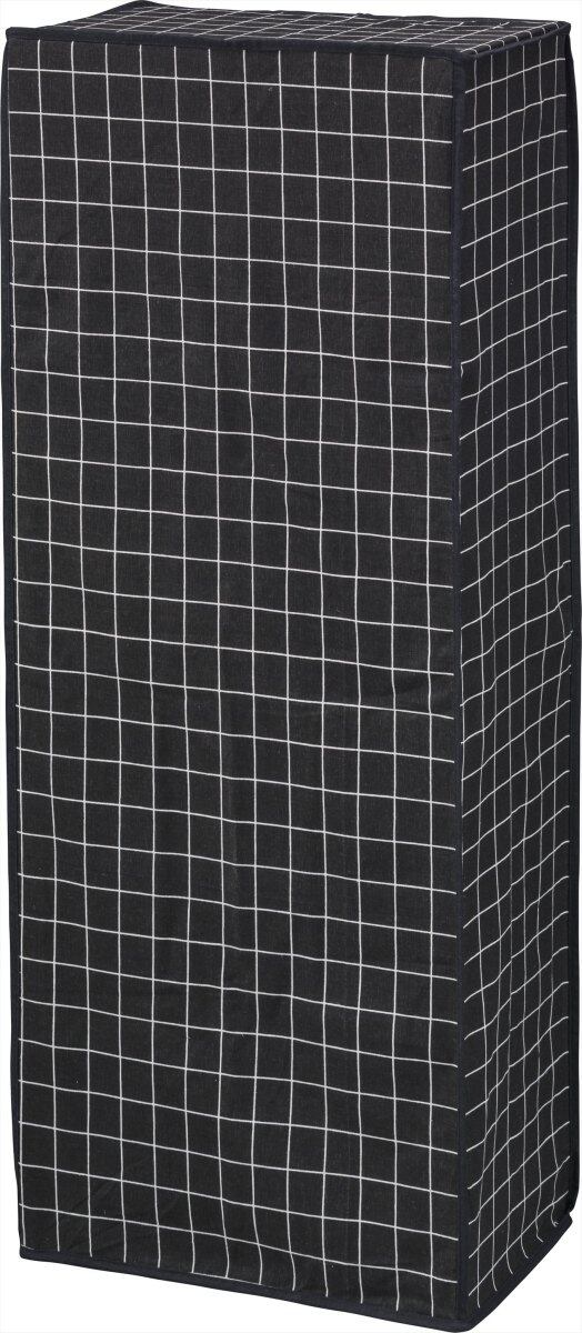 棚がすのこ状になっているので、荷物を置いた面への熱がこもりづらい仕様。底面以外ファブリックで覆われているので、ほこりが入りづらく清潔。シェルフの前面はのれん状になっているので、生地をくるくると巻いてマジックテープの付いた紐で留めておくことができます。