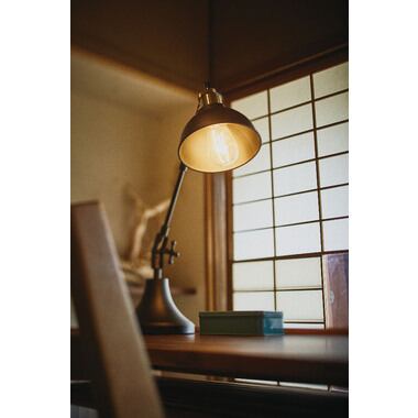 黒シェードと黒アイアンのインダストリアルなデスクライト カジュアル モダン 北欧 インダストリアル 照明 間接照明 黒 ブラック ダイニング リビング