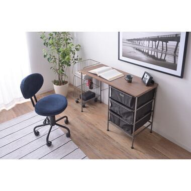 スチールフレームとキャンバス片袖のヴィンテージなデスク 北欧 インダストリアル デスク ワークデスク 勉強机 リビング 書斎