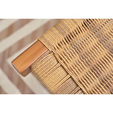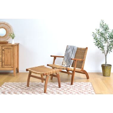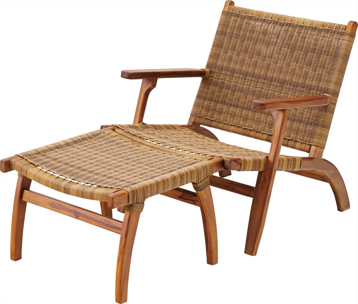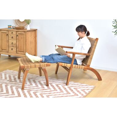 チークとラタン調編み込み座面のアームチェア&オットマンセット