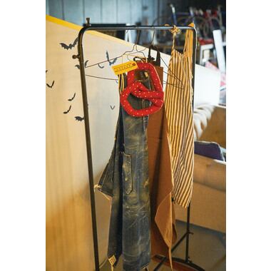 マホガニーと黒アイアンのインダストリアルなハンガー