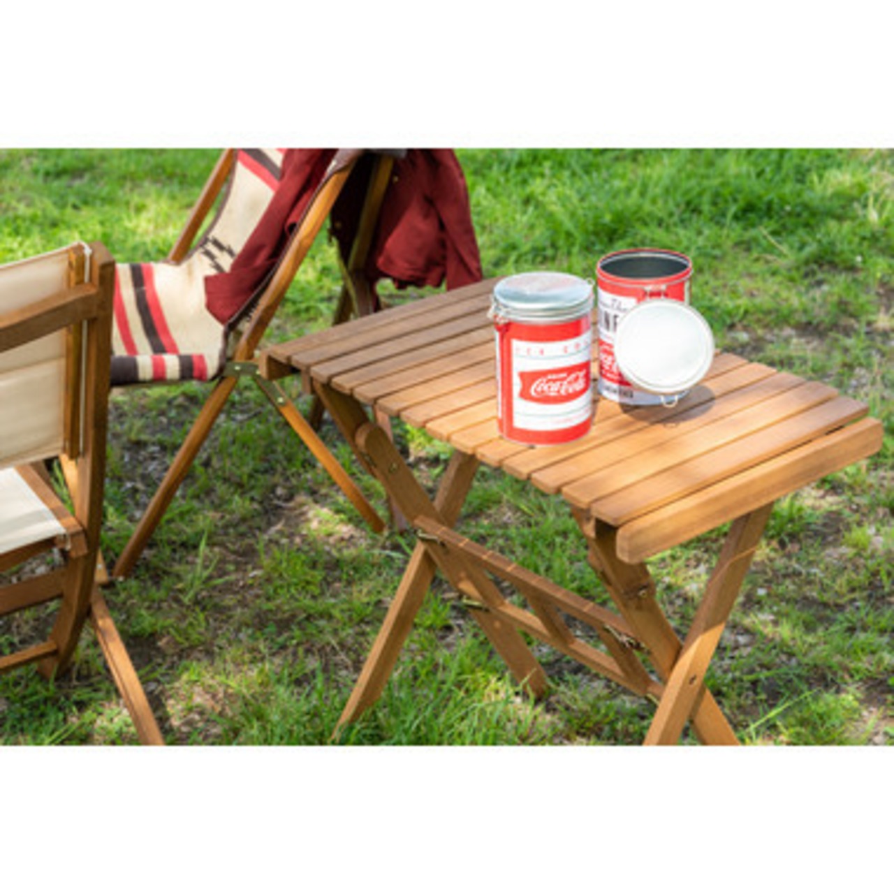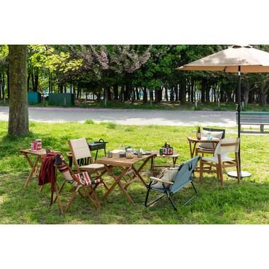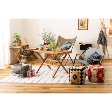 特徴ある個性的な木目が人気の天然木(アカシア)材にオイル仕上げで完成させた、風合いのあるテーブル。取っ手&ショルダーが付いた専用収納ケースが付いているので、持ち運びや収納に便利です。