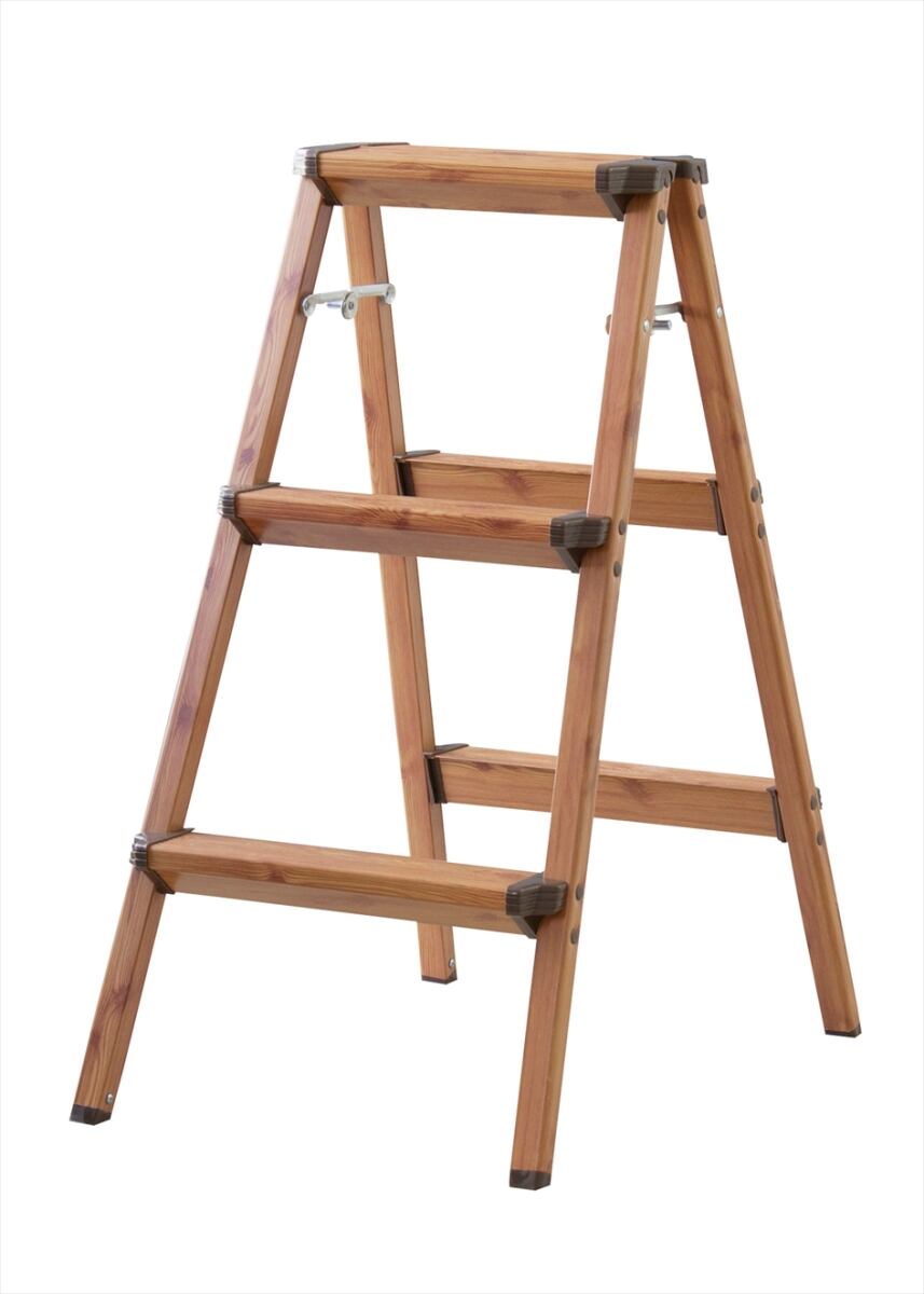 お部屋のインテリアに溶け込む、アルミ素材のステップ スツールです。木目調の仕上げで飾りたくなるステップ スツールです。脚立以外にも花台や、板を渡せばラックとしても、車の中に入れて洗車のときなど使い方によって様々なシーンで大活躍です。