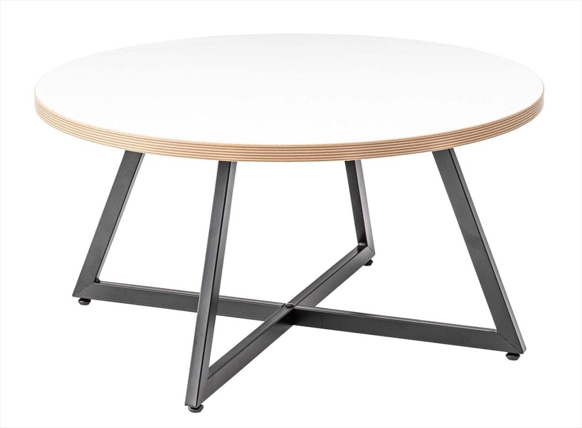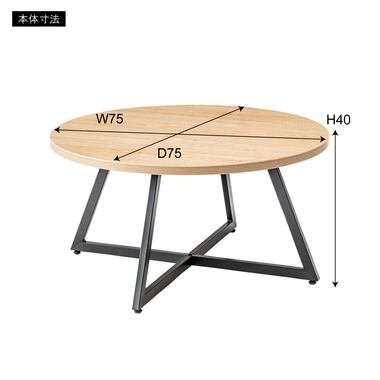 丈夫な木目調天板と黒アイアン脚のインダストリアルなラウンドセンターテーブル L