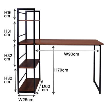 黒アイアン脚の収納ラック付きデスク