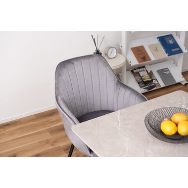 ベロアの質感が美しい包み込まれるモダンなダイニングチェア