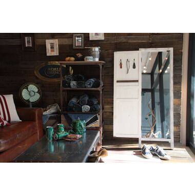 扉の形をそのまま活かした、遊び心満載の「ドアミラー」。扉の裏面には収納付きで、玄関に置けばとても便利なミラーです。