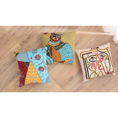 完成品 クッション アートクッション 約45?45センチ インド綿 コットン アクセント アジアン おしゃれ 背クッション 枕 ヴィンテージ
