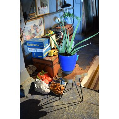 無垢材と黒アイアン脚の野趣あふれるサイドテーブル