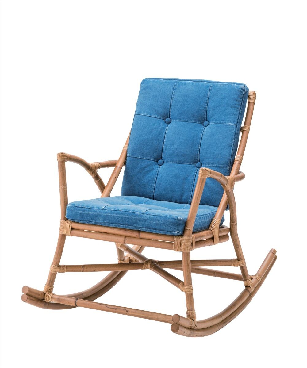 ラタンとデニムのロッキングチェア 北欧 インダストリアル チェア ダイニングチェア アウトドア ガーデン ダイニング キッチン ダイニングキッチン