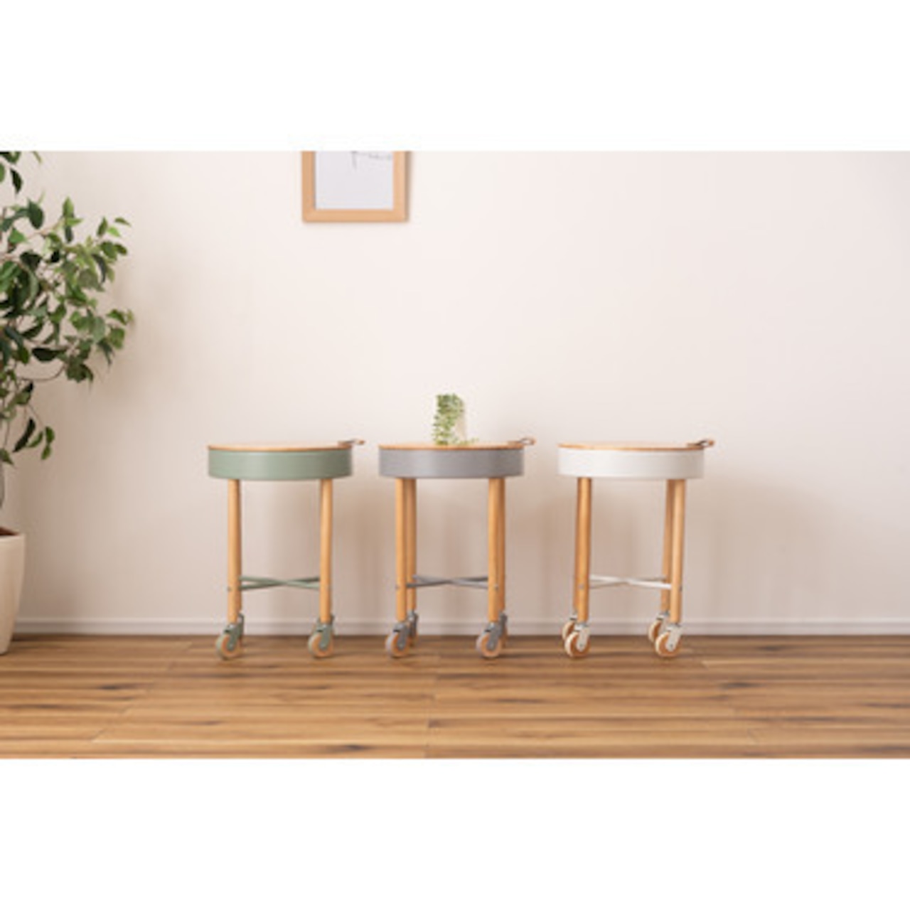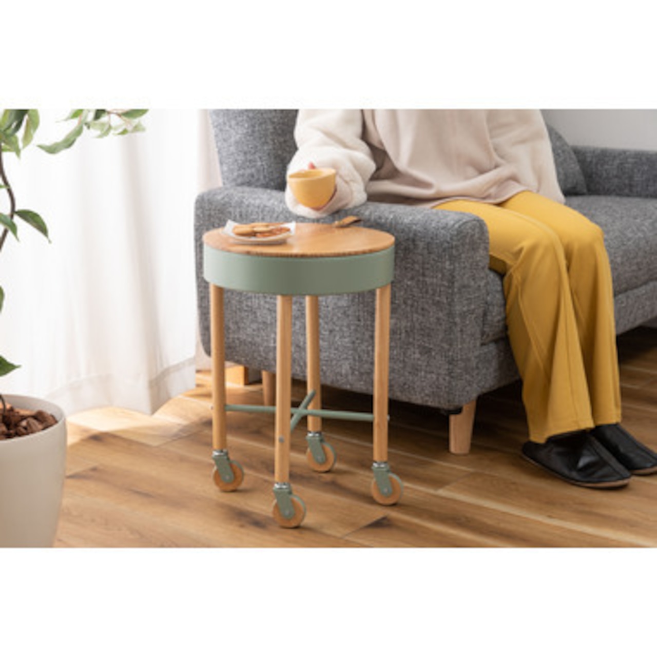キャスターの側面部分にも天然木を使用した、細部のデザインにもこだわったサイドテーブル。