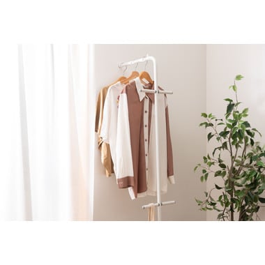 お部屋の中や玄関などの好きな所に立てかけるだけなので場所を取らず、洋服やコート、鞄などを簡単に収納することができます。見せるインテリアとしておすすめです。