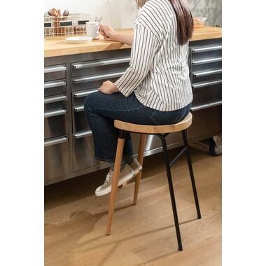 ラバーウッドとスチールのスタイリッシュなハイスツール