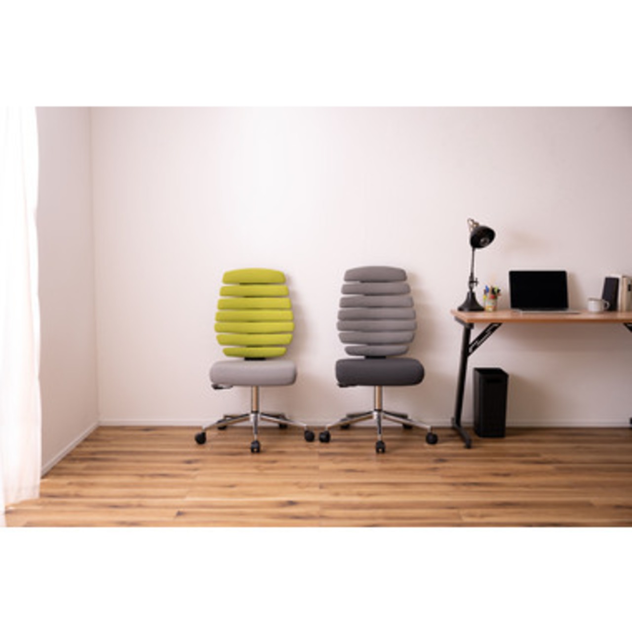 体のラインにフィット、シンプルかつスタイリッシュなデザインのデスクチェア、オフィスチェア、ガスチェア。背もたれが独立した構造となっているので自然なカーブで身体を支えます。座面は47〜55cmまで高さ調整が可能。