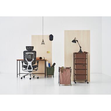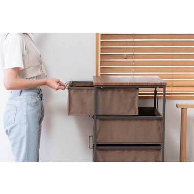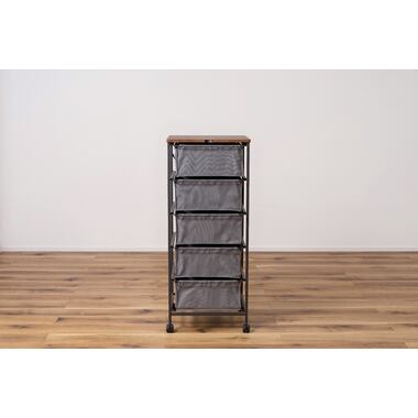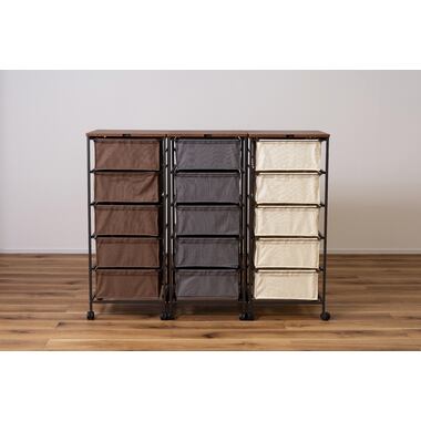 木目調天板と黒アイアン脚のキャンバスチェスト 5段 キャスター付き