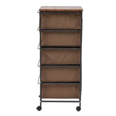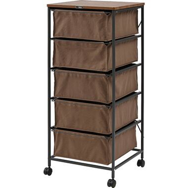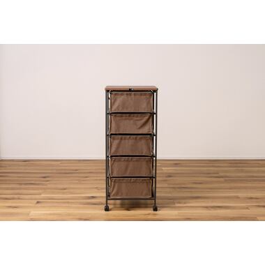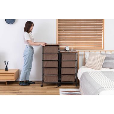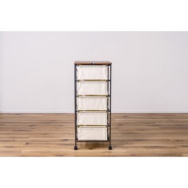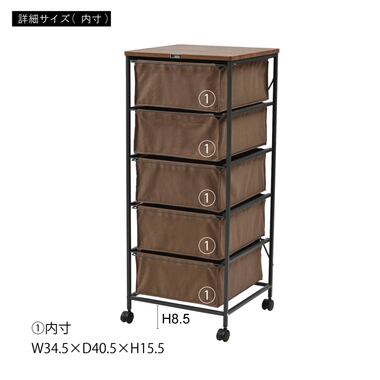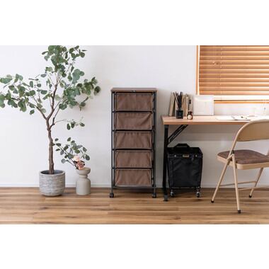 木目調天板と黒アイアン脚のキャンバスチェスト 5段 キャスター付き カジュアル モダン 北欧 ナチュラル 収納家具 リビング