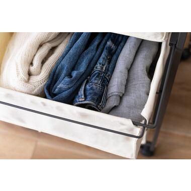 お部屋のインテリアにもなじみやすく、使い勝手のいいキャンバスチェスト。