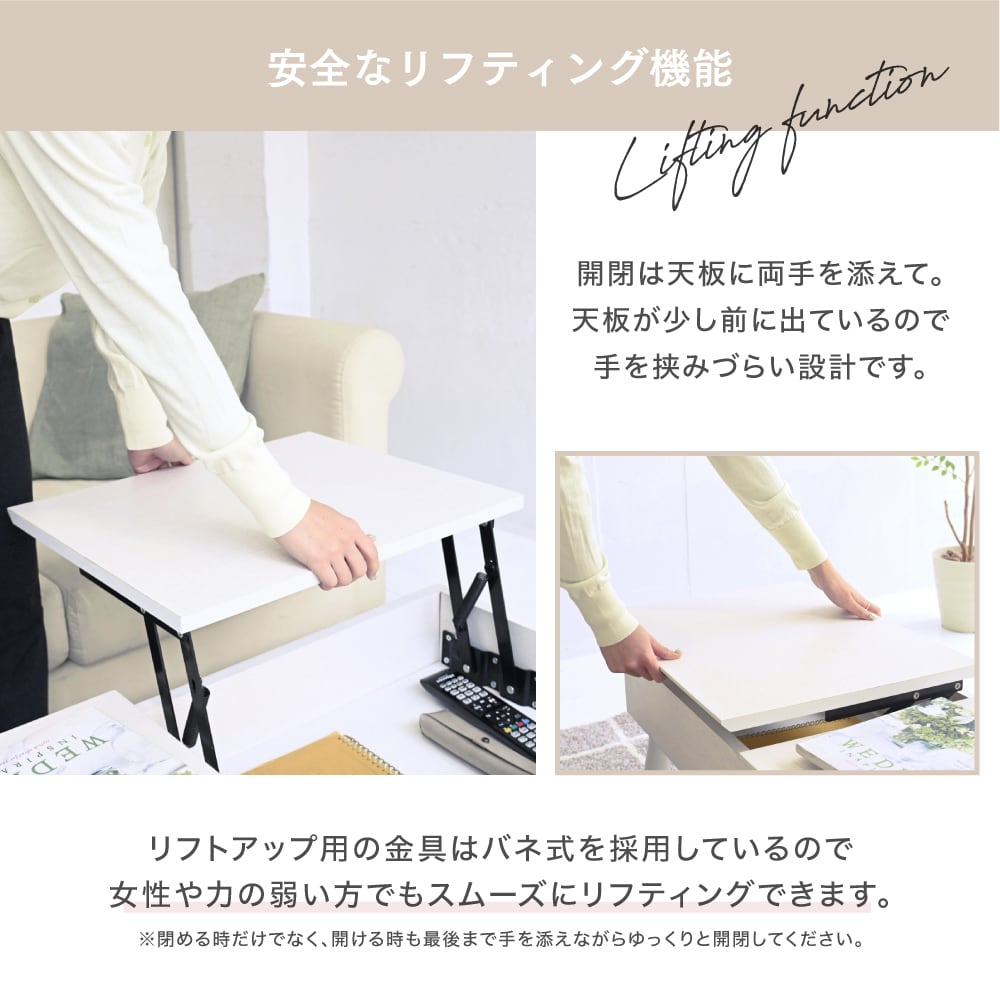 リフティングテーブル ドレッサーデスク 昇降式テーブル 幅80 白 ドレッサー 収納 組み立て簡単 センターテーブル ロータイプ リフトアップテーブル cambio