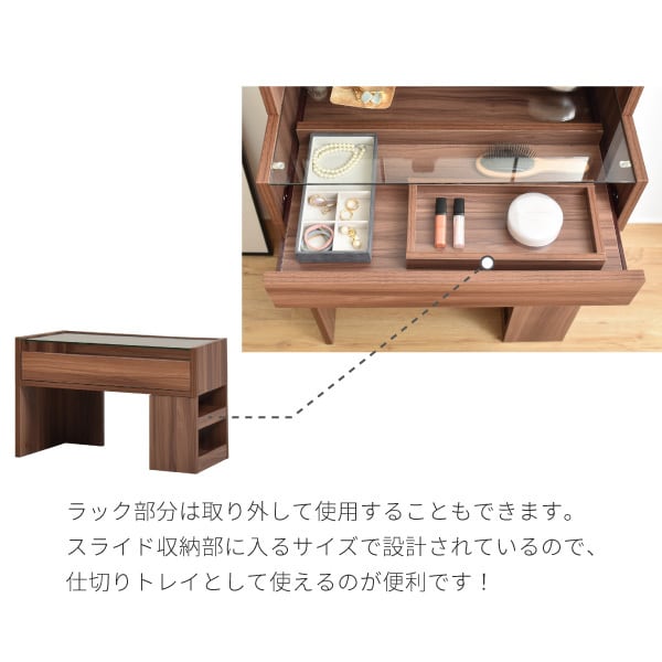 コンパクト 白 透明 一人暮らし ホワイト リビング 収納 強化ガラス 化粧台 収納付き 棚付き 長方形 茶色 引き出し付き 見せる収納 メイク 木製 木目 ワンルーム 雑貨 ブラウン パソコンデスク pc ロー 鏡 シンプル スライド 棚 ラック ガラス ダークブラウン 机 テレワーク ノートパソコン ノートpc 本棚 本立て ラック付き リモートワーク リモート ガラストップ 在宅 在宅ワーク ドレッサー代わり ブックスタンド ブックシェルフ アクセサリー ミニテーブル 木目調 低い コンパクトデスク スリムデスク 収納デスク