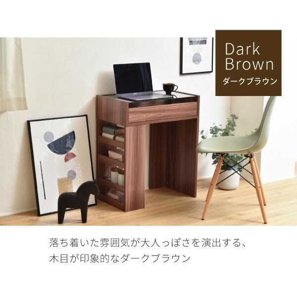 コンパクト 白 透明 一人暮らし ホワイト リビング 収納 強化ガラス 化粧台 収納付き 棚付き 長方形 茶色 引き出し付き 見せる収納 メイク 木製 木目 ワンルーム 雑貨 ドレッサー ブラウン ブログ パソコンデスク pc 鏡 シンプル スライド 棚 ハイテーブル ラック ガラス ダークブラウン 机 テレワーク ノートパソコン ノートpc 本棚 本立て ラック付き リモートワーク リモート 在宅 ドレッサー代わり ブックスタンド ブックシェルフ アクセサリー ミニテーブル 木目調 低い コンパクトデスク スリムデスク 収納デスク