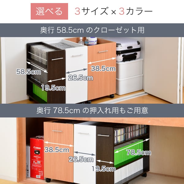 クローゼット 収納 ラック 2個セット 幅19.5奥行58 .5 キャスター付き スリム 押し入れ収納 本棚 ワゴン 隙間 収納 棚 漫画 CD DVD スライド シンプル コミック