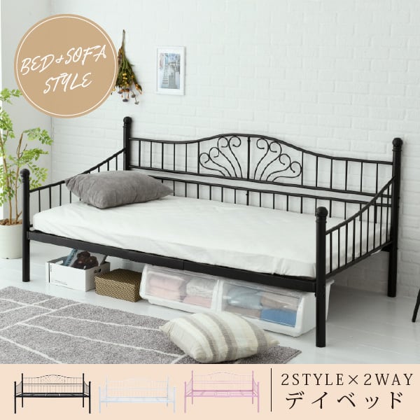 デイベッドソファー 黒 白 ブラック ホワイト ピンク 204cm 105cm パイプベッド ソファーベッド ベッドソファ ベッドソファー セミダブル ソファー 2人掛け 2人 3人掛け リゾート シングルベッド アイアン アイアンワーク おしゃれ アンティーク風 クラシック ヨーロピアン調 ヨーロッパ 風 姫 姫系 姫さま お姫様 可愛い ひとり暮らし 一人暮らし ロココ調 ゴシック 調 収納 女の子 床下収納 幅203 奥行105 床面 48cm 42cm デイベット デイベッドフレーム 家具 ロマンチック ロマンティック インテリア 部屋 白家具 2way 高さ 耐 荷重 120kg 長さ 200cm ハイタイプ ロータイプ 大人用 ソファベット 2ウェイ 耐荷重 120 極太 パイプローベッド プリンセス