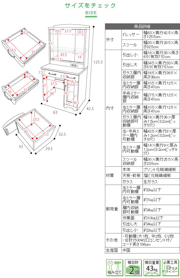 (ドレッサー)幅63×奥行42.5×高さ125.5cm