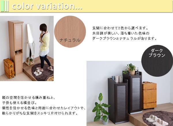 ルーバーシューズボックスの幅違いシリーズが登場。2個セットで、横に並べても縦に積んでもOKで、扉の開け方も左右選べます。部屋に合わせて色、サイズ、使い方が選べる便利なシューズボックスです。