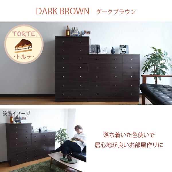 かわいいピンクとさわやかなナチュラル、シックなダークブラウンをご用意。お子様から大人まで幅広い世代にピッタリのシンプルなデザイン。引き出しには衣類から小物までたっぷり収納。
