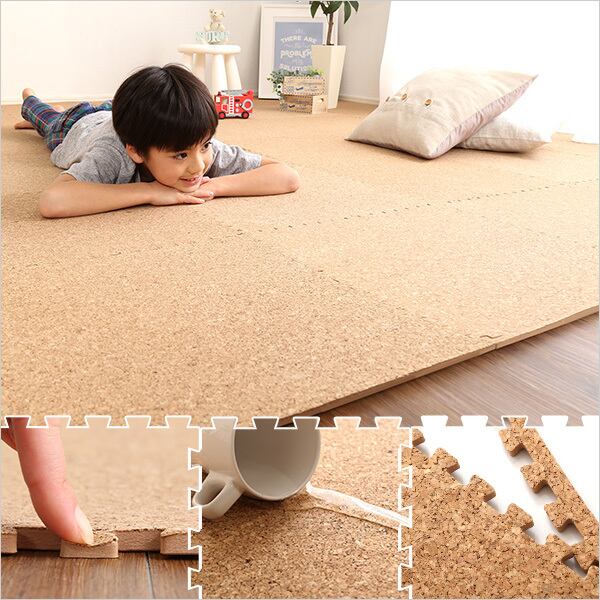 大粒の天然コルクを使用したジョイントコルクマット8枚タイプ衝撃を吸収するEVA樹脂だから防音効果や保温効果があります!