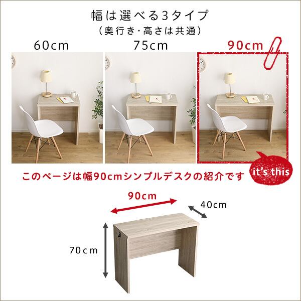 シンプルデスク90cm幅【LULUTE-ルルテ-】