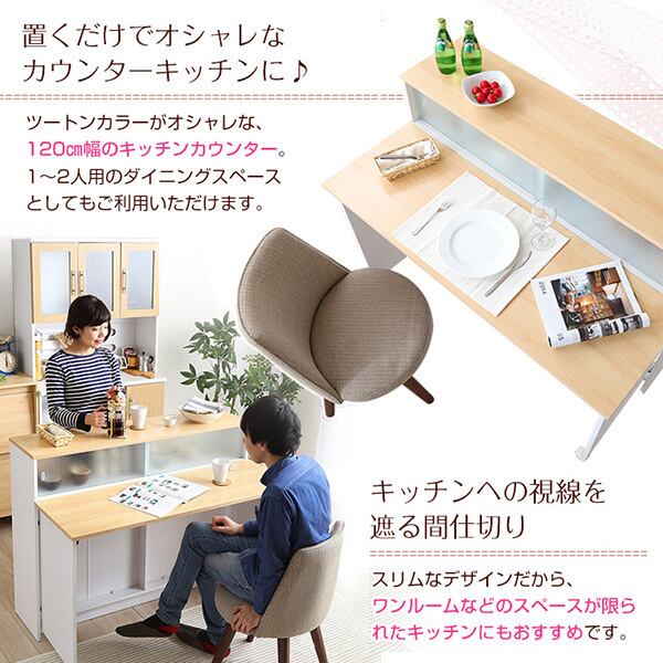 ツートンカラーがおしゃれな間仕切りキッチンカウンター(幅120cm)ナチュラル、ブラウン | Kiley-カイリー-