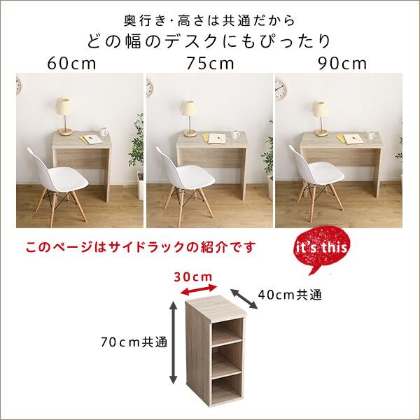 シンプルデスク用サイドラック30cm幅【LULUTE-ルルテ-】