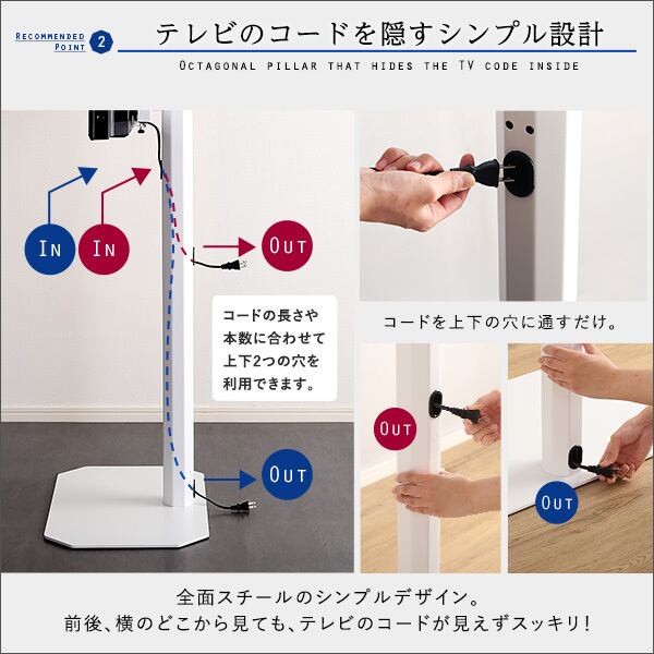 美しいフォルムの八角壁寄せテレビスタンド ハイタイプ OCTA オクタ