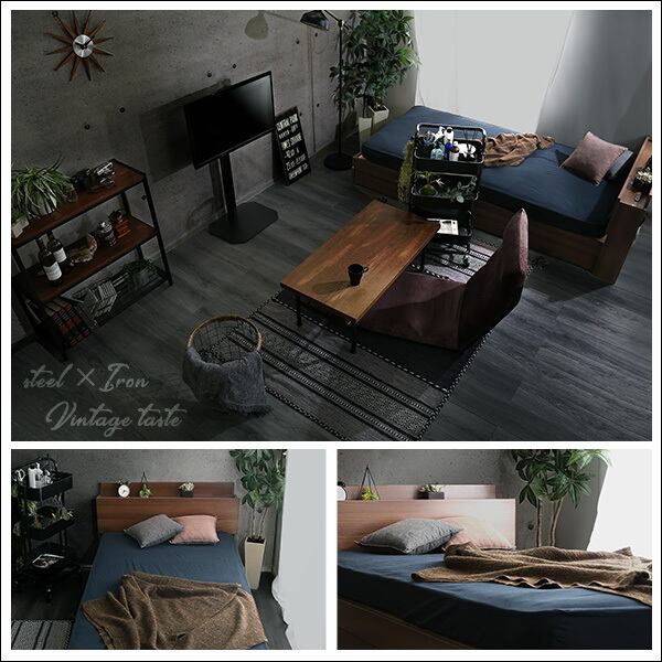 棚・収納付きヴィンテージチェストベッド ダブル BROOK