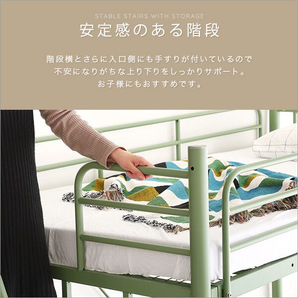 北欧インテリア 階段付き パイプロフトベッド【Levata-レヴァタ-】