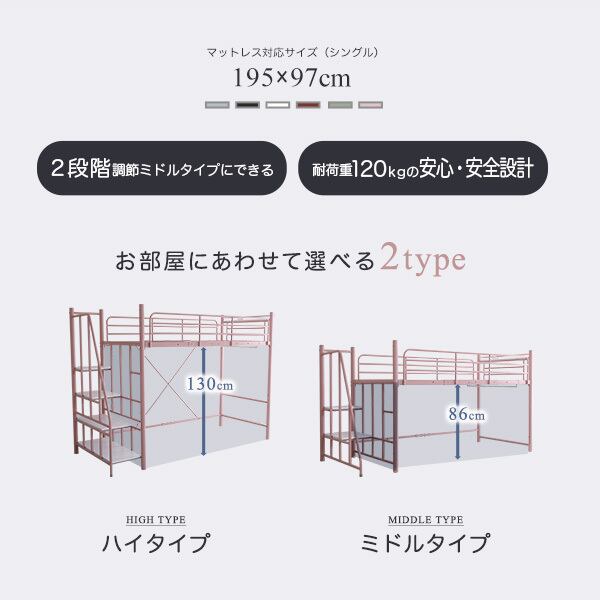 空間を有効活用できるロフトベッドでハイタイプ・ミドルタイプに高さ調整可能です!