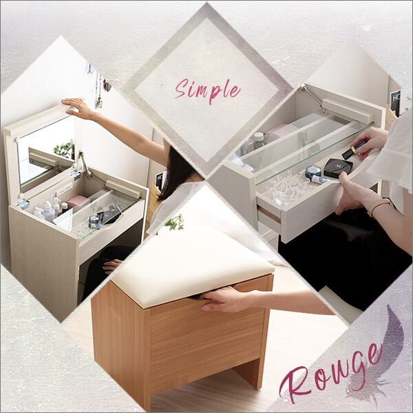 コンパクト収納ドレッサー スツール 2点セット コンセント付き rouge ルージュ