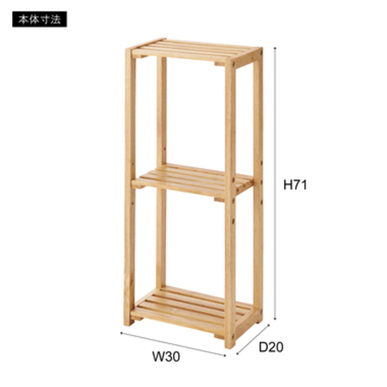 ラバーウッドの北欧ナチュラルなスリムシェルフ